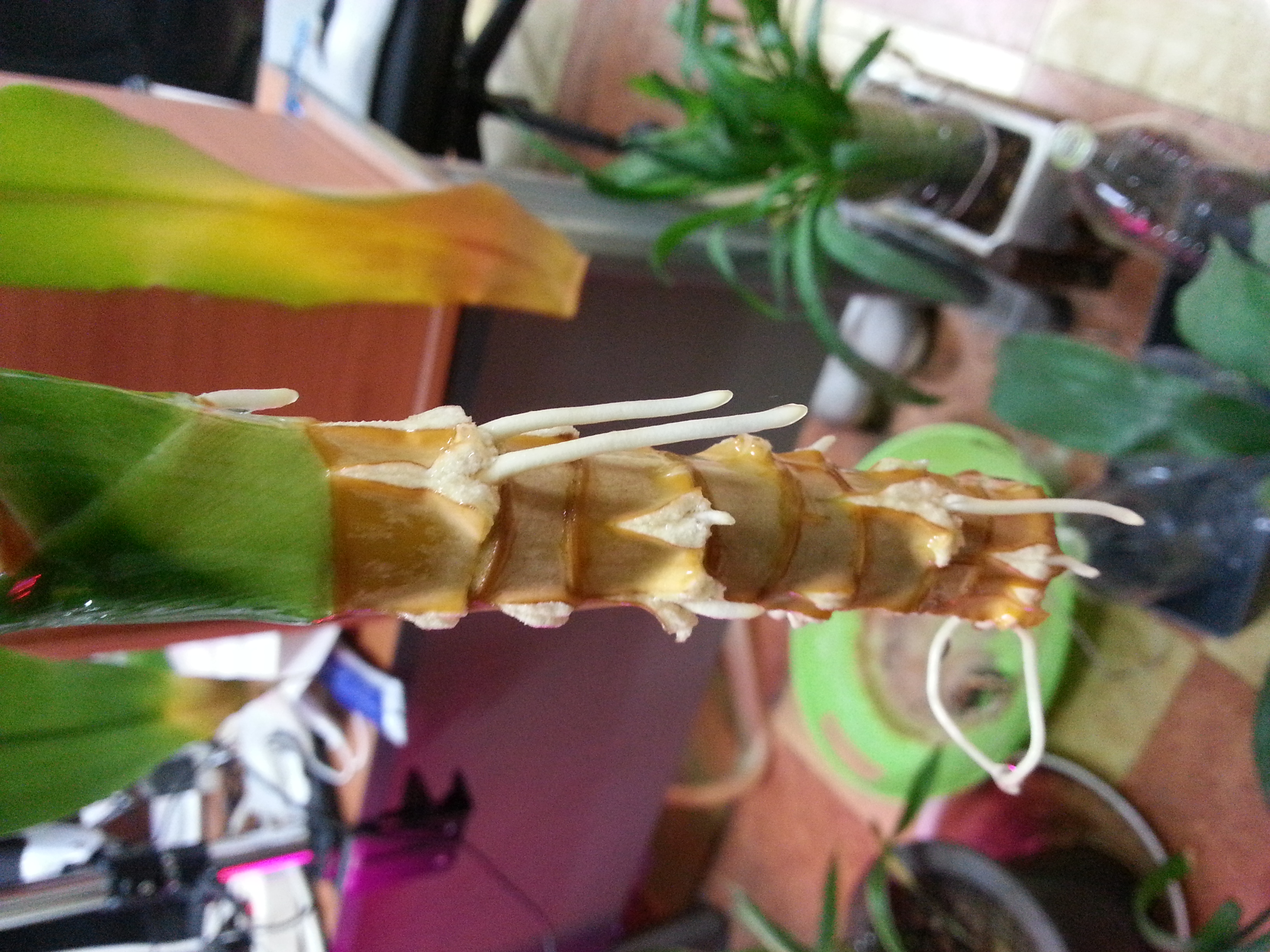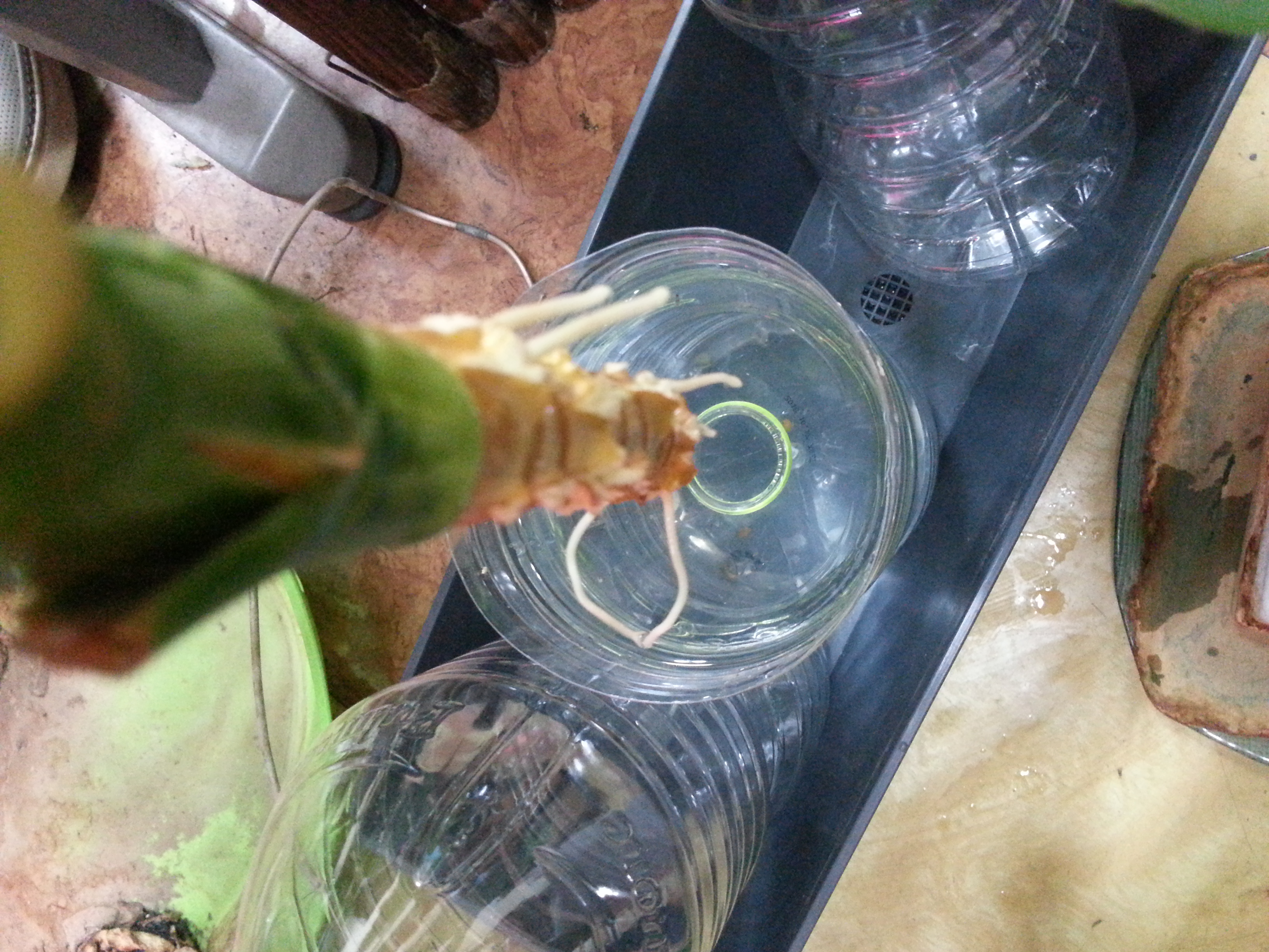 그리고 물에 담궈놓은지 2~3주 정도 지났는데 잘린 가지의 끝부분에서 뿌리가 자라기 시작했습니다. 좀더 뿌리가 풍성해지면 화분에 옮겨 심을 계획입니다.