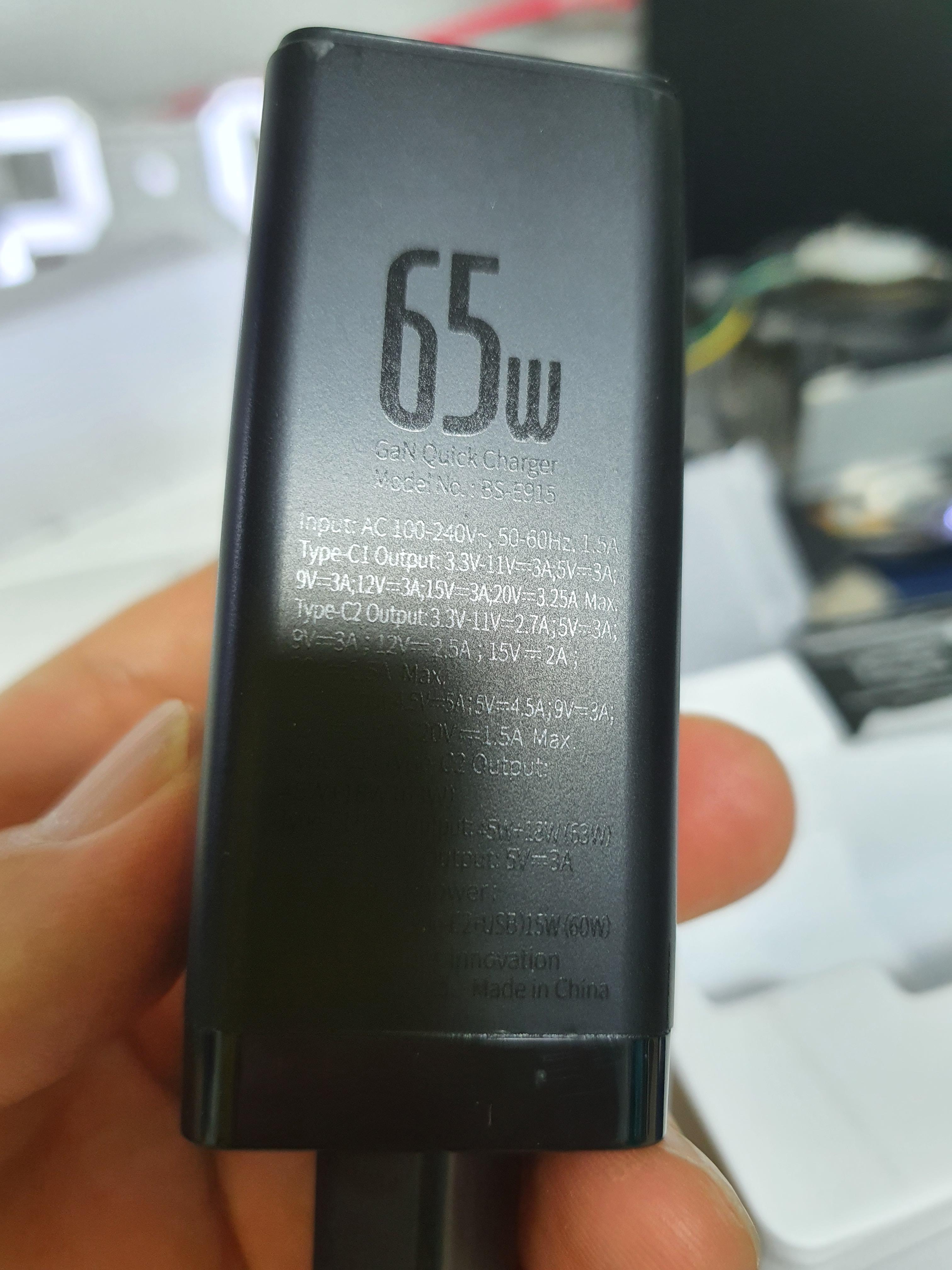 용 도 : Baseus(베이스어스) 65W 퀵 차지 3.0 고속 충전 보조배터리(30000mAh)를 빠르게 충전하기 위함.